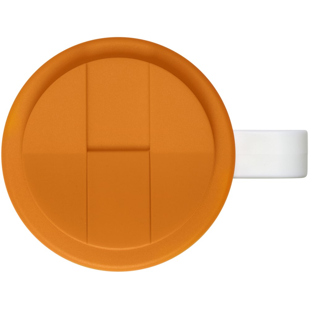 Dubbelwandig geïsoleerde beker met draaideksel. De buitenste laag van de beker is gemaakt van gerecycled plastic. De beker heeft een full colour all-over bedrukking welke tijdens het spuitgiet proces één wordt met de beker en hierdoor lang meegaat en duurzaam is. Mix en match kleuren om je perfecte beker te creëren. Gemaakt in het Verenigd Koninkrijk. Geleverd in een witte geschenkverpakking. BPA-vrij. Voldoet aan EN12875-1, is vaatwasmachine- en magnetronbestendig.