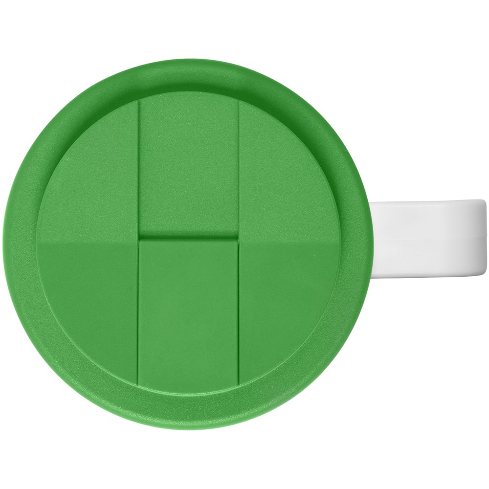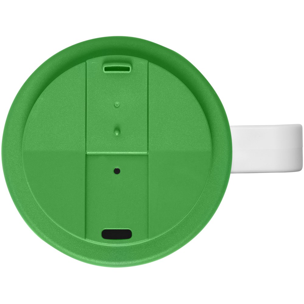 Dubbelwandig geïsoleerde beker met draaideksel. De buitenste laag van de beker is gemaakt van gerecycled plastic. De beker heeft een full colour all-over bedrukking welke tijdens het spuitgiet proces één wordt met de beker en hierdoor lang meegaat en duurzaam is. Mix en match kleuren om je perfecte beker te creëren. Gemaakt in het Verenigd Koninkrijk. Geleverd in een witte geschenkverpakking. BPA-vrij. Voldoet aan EN12875-1, is vaatwasmachine- en magnetronbestendig.