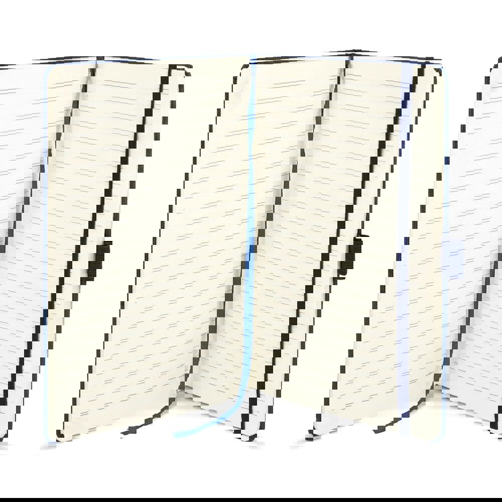 A5-notitieboek van thermo PU-leer met een moderne, premium uitstraling. Voorzien van een elastische sluiting, lintmarker en pennenlus. Het bevat 80 gelinieerde crèmekleurige pagina’s van FSC-gecertificeerd papier.