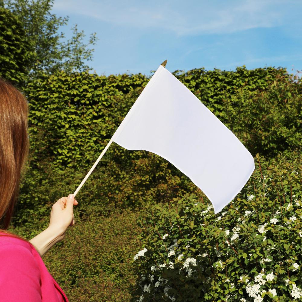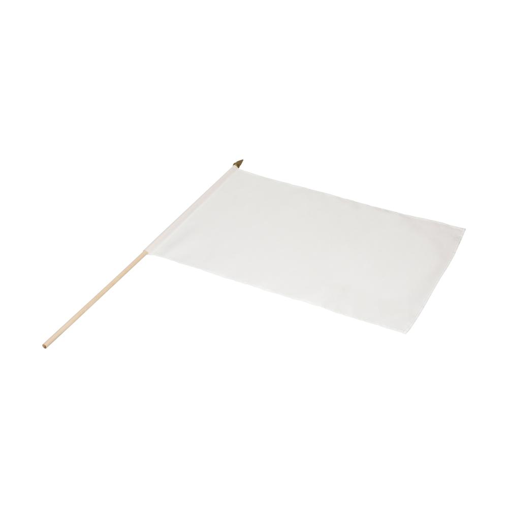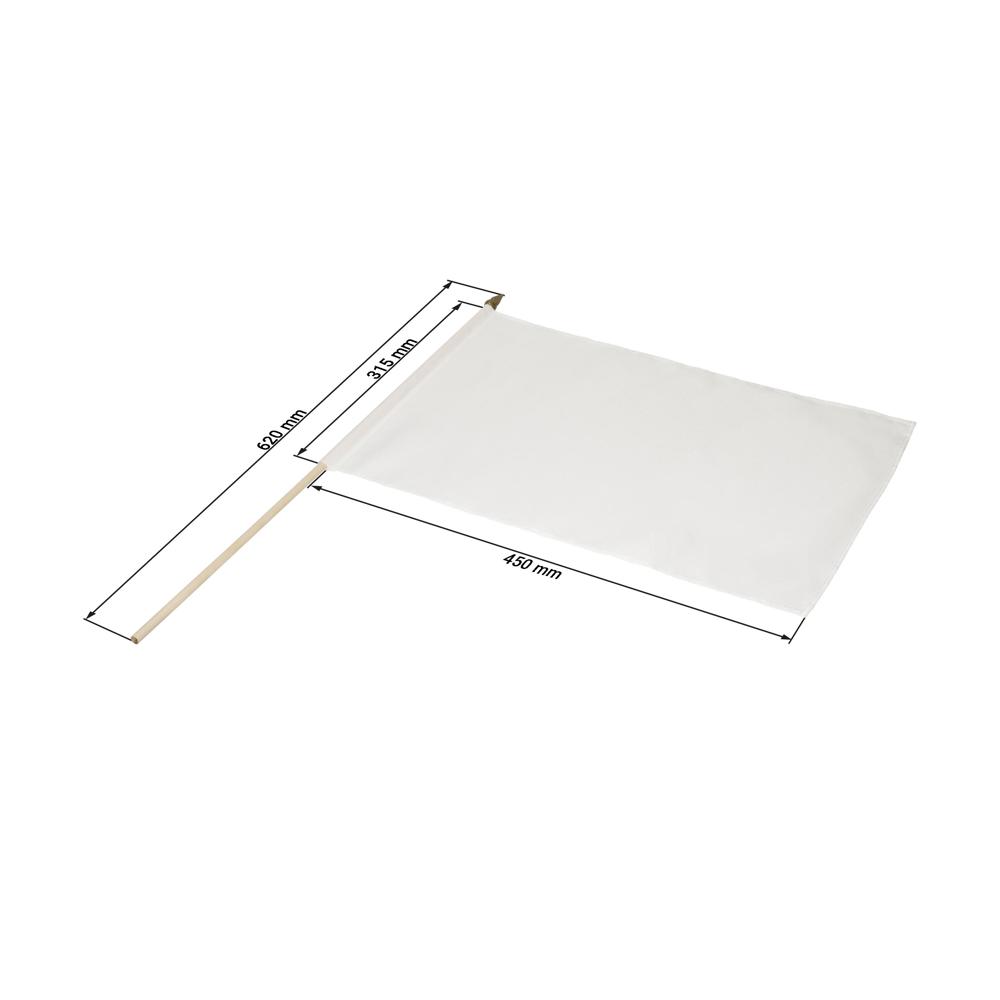 Witte vlag aan een ronde houten stok. De vlag is ideaal voor veredeling in sublimatiedruk. Stok: 60 cm.