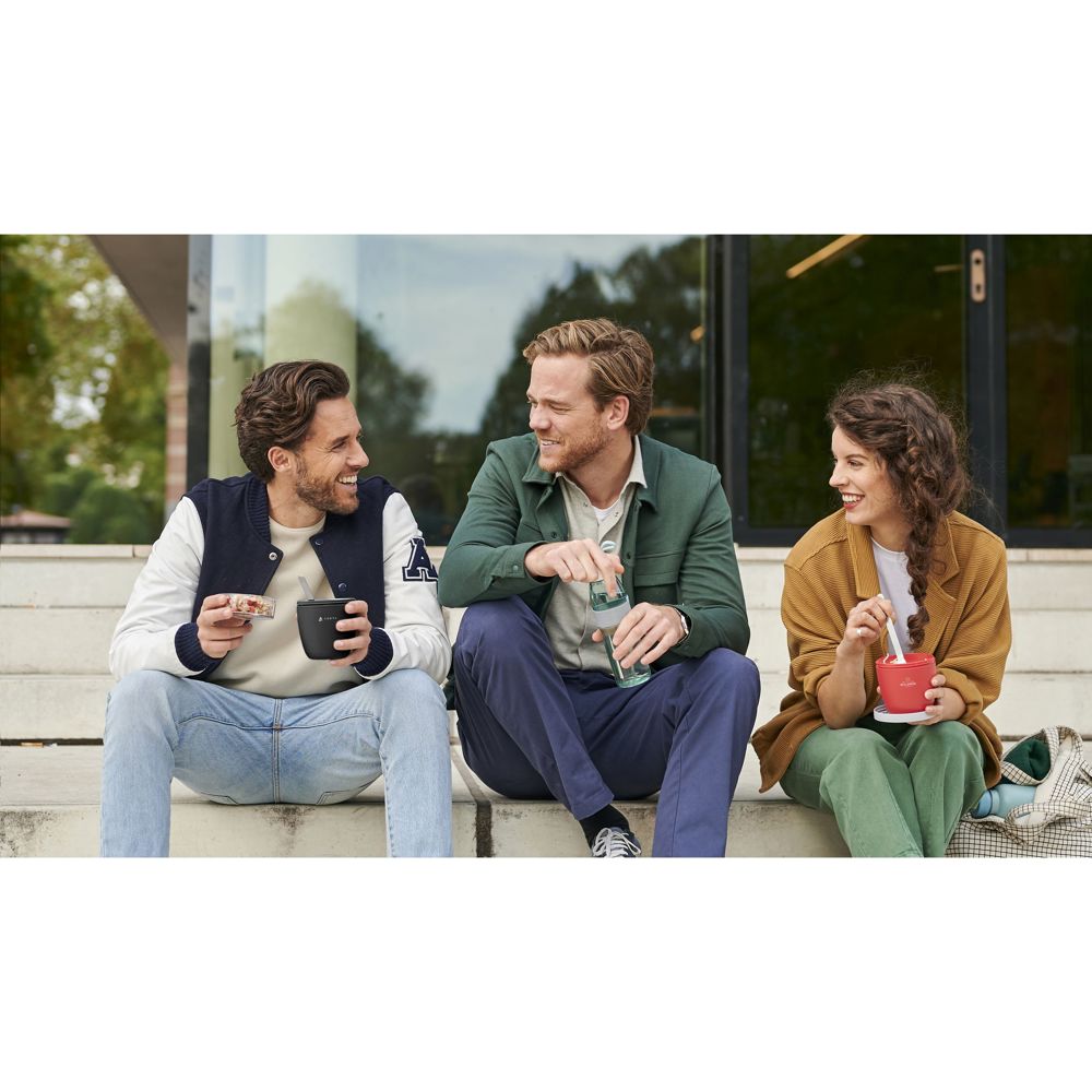 Altijd een gevarieerde lunch met deze 2-delige lunchset van het merk Mepal: • Kunststof lunchpot Ellipse 700 ml. Met afzonderlijke bewaarcontainers (500 ml + 200 ml) en lekvrije sluiting. Ideaal voor ieder tussendoortje zoals soep, noedels of yoghurt. • Waterfles Vita (700 ml) van Tritan en PP. Met 2 openingen: gemakkelijk om te drinken, bij te vullen en schoon te maken. Openen en sluiten met een korte twist. Siliconen draaglus. Lekvrij. Geschikt voor koolzuurhoudende dranken, vul in dat geval de fles niet helemaal tot aan de rand. Voor beide producten geldt: 100% reyclebaar. Vaatwasserbestendig. Voor behoud van de opdruk wordt met de hand afwassen aanbevolen. Made in Holland. Per set verpakt.
