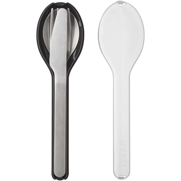 Met deze stijlvolle en praktische Ellipse-bestekset heb je altijd een mes, vork en lepel bij de hand. Ze zijn gemaakt van roestvrij staal en opgeborgen in een compacte kunststof houder die makkelijk in je tas past. Na gebruik doe je alles gewoon in de vaatwasser. Ideaal voor onderweg, op het werk of tijdens een picknick.