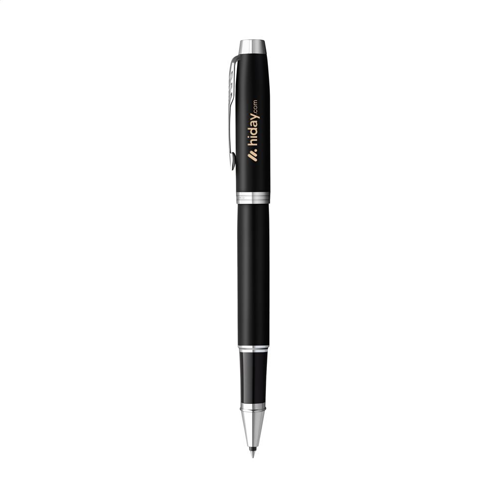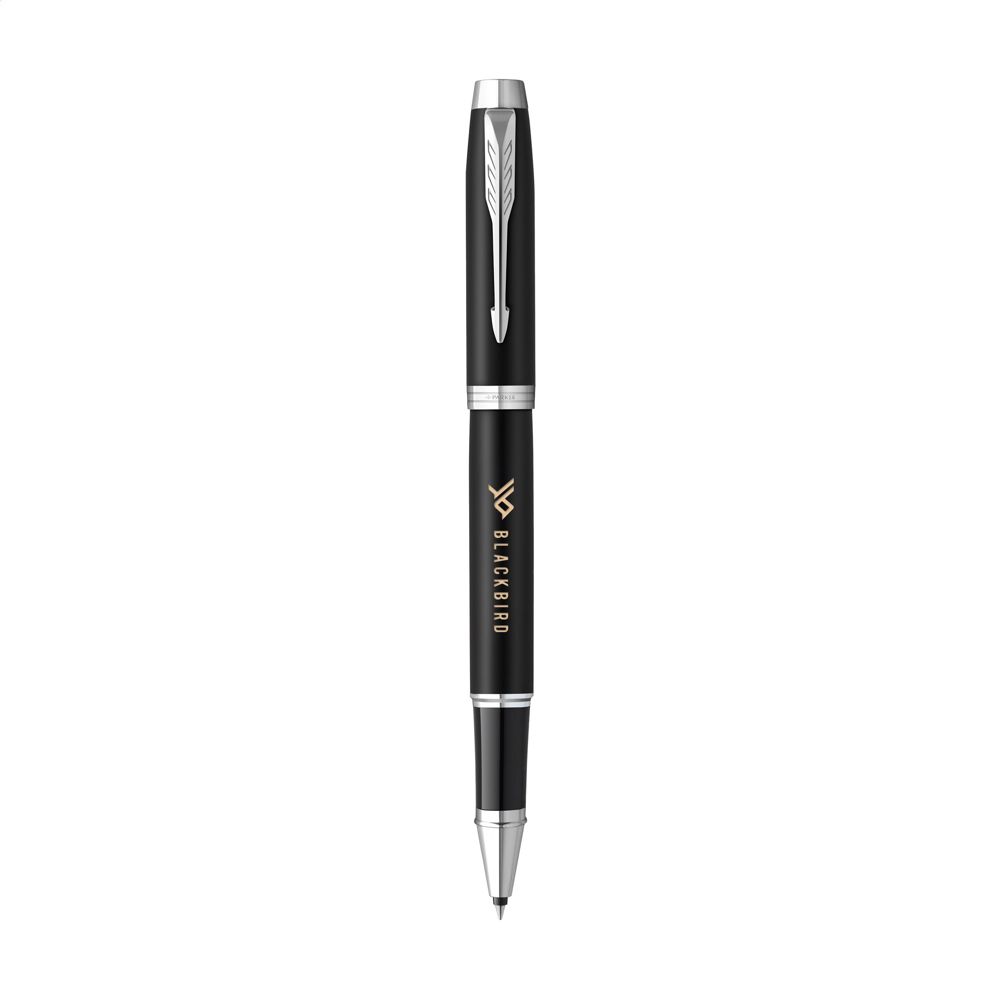 Zwartschrijvende rollerpen van het merk Parker. Met slanke, taps toelopende vorm en exclusief ontwerp. De messing behuizing, gecombineerd met een zwart kunststof voorstuk en hoogglans RVS accenten, zorgt voor een elegante uitstraling. Met afneembare dop en iconische, verende pijlclip. De rollerbalpunt en sneldrogende blauwe gelvulling zorgen voor een vloeiende schrijfervaring. Ideaal als persoonlijk cadeau en perfect voor dagelijks gebruik. Geleverd in een Parker giftbox.