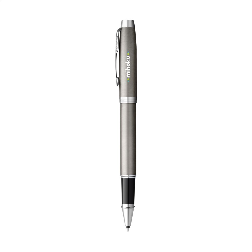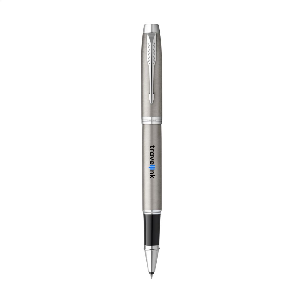 Zwartschrijvende rollerpen van het merk Parker. Met slanke, taps toelopende vorm en exclusief ontwerp. De messing behuizing, gecombineerd met een zwart kunststof voorstuk en hoogglans RVS accenten, zorgt voor een elegante uitstraling. Met afneembare dop en iconische, verende pijlclip. De rollerbalpunt en sneldrogende blauwe gelvulling zorgen voor een vloeiende schrijfervaring. Ideaal als persoonlijk cadeau en perfect voor dagelijks gebruik. Geleverd in een Parker giftbox.