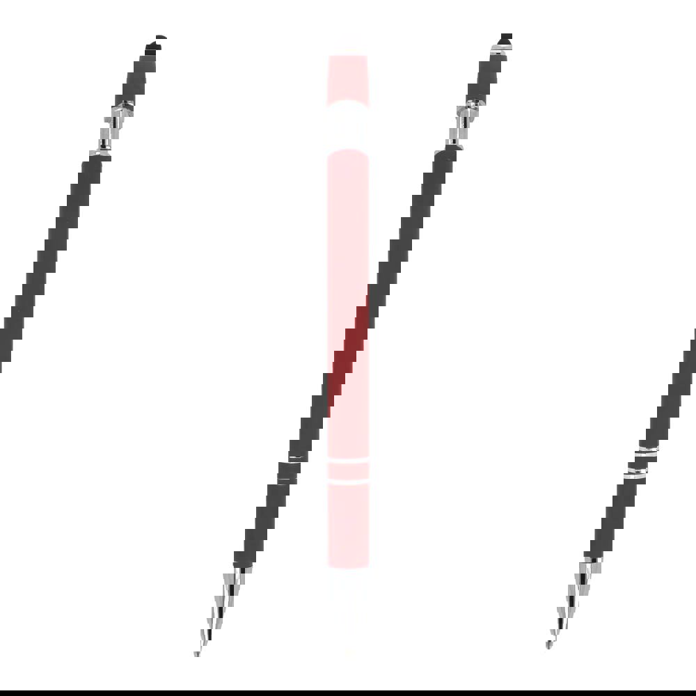 Aluminium balpen met elegante soft-touch afwerking en stylus. Met een solide metalen clip. Schrijfkleur: blauw.