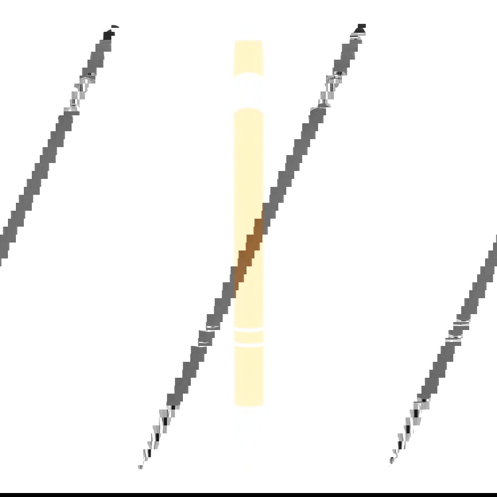 Aluminium balpen met elegante soft-touch afwerking en stylus. Met een solide metalen clip. Schrijfkleur: blauw.