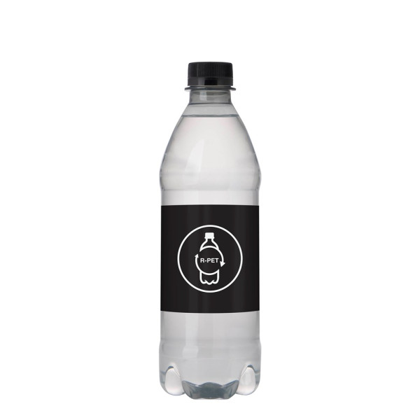500 ml natuurlijk bronwater in een R-PET fles met draaidop. Kleur dop zwart.