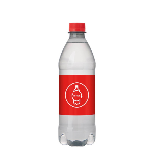 500 ml natuurlijk bronwater in een R-PET fles met draaidop. Kleur dop rood.