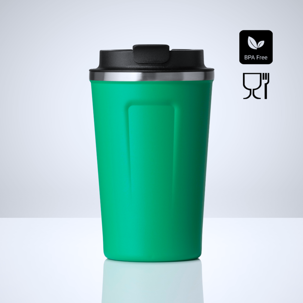De Nordic thermische mok met uitstekende thermische isolatiemogelijkheden (tot 12 uur lage temperatuur, tot 6 uur hoge temperatuur). Ligt prettig in de hand door het gebruik van matte poedercoating en ergonomisch ontwerp. Dubbele wand gemaakt van extreem duurzaam Koreaans POSCO 18/8 RVS, met poedercoating voor een veilige grip. De mok is 100% BPA-vrij gecertificeerd, heeft een lekvrij deksel en een siliconen bodem. Past in koffiebekerhouders in de auto.
