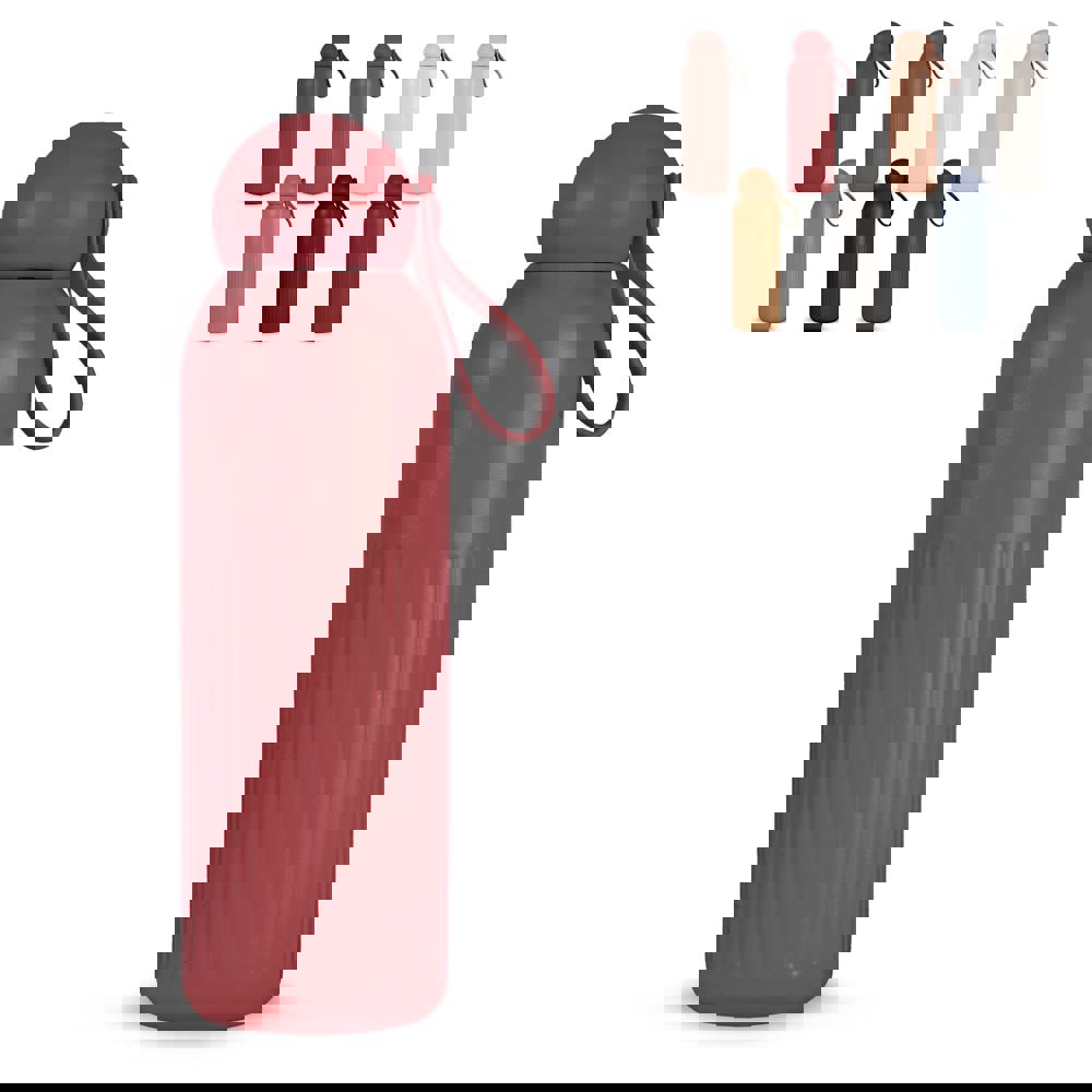 De Sagaform Tekla fles staat voor Scandinavisch design en dagelijks gebruik. Gemaakt van gerecycled staal met vacuümisolatie en kopercoating: houdt dranken 12 uur warm of 24 uur koud zonder condensatie. Verticale strepen, een afgeronde dop van gerecycled plastic en een afneembaar rietje kenmerken het functionele design. Vaatwasserbestendig.
