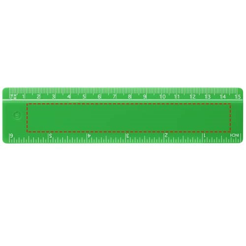 Stevige liniaal met markeringen van gerecycled plastic, beschikbaar in zowel inch als centimeter. meer