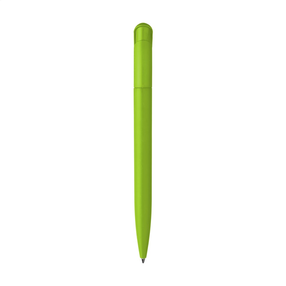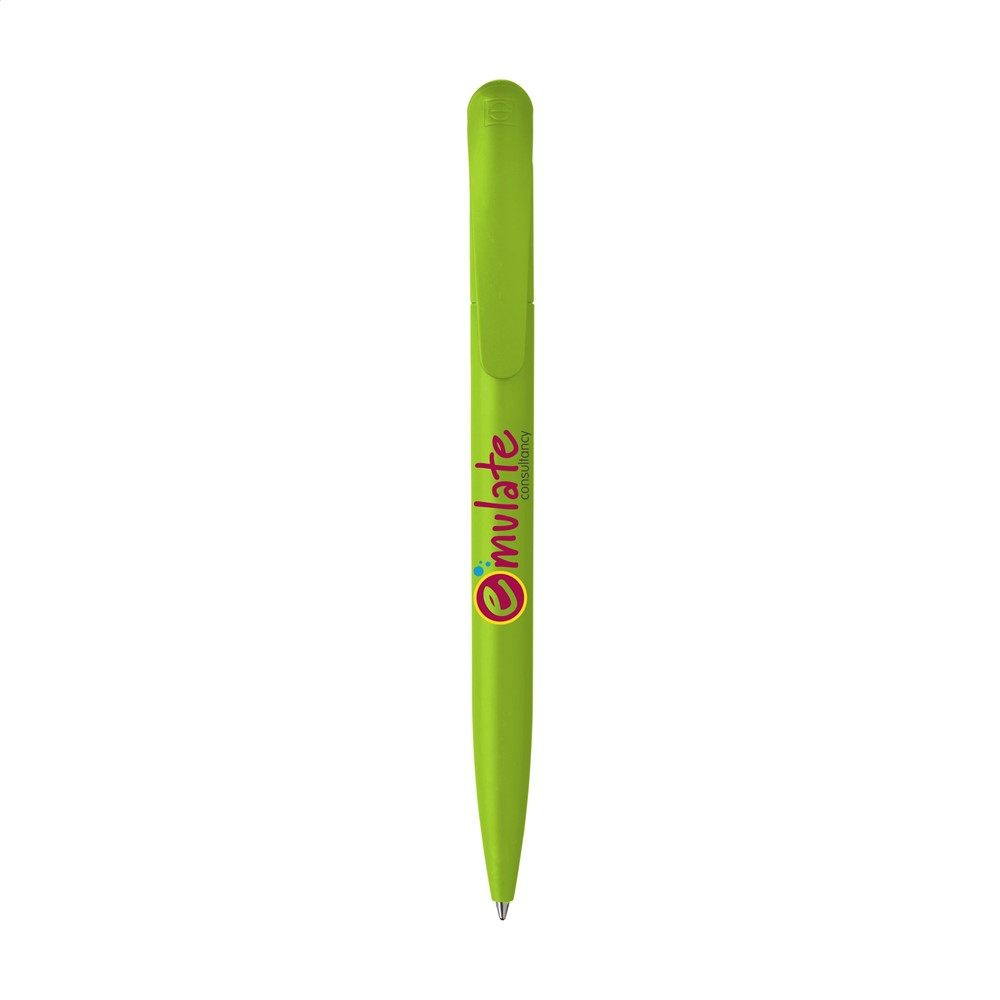 Blauwschrijvende balpen van het merk Senator®. Biologisch afbreekbaar. Met strakke, matgepolijste houder en royale, gebogen clip/drukknop. Geproduceerd volgens Europese specificatienormen EN 13432. Made in Germany.