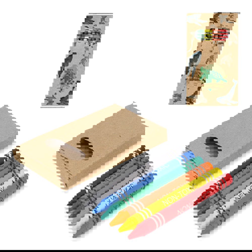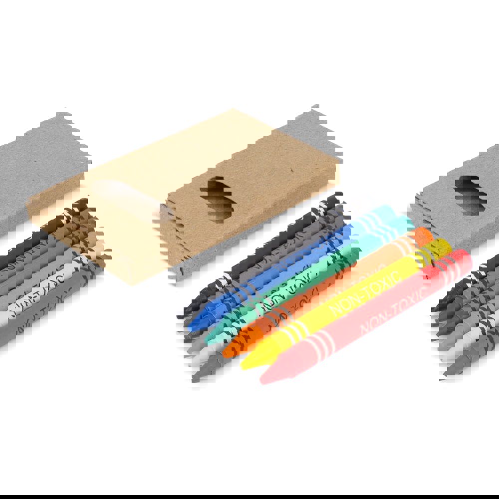 6 Waskrijtjes in kraftkartonnen verpakking, perfect voor creatieve projecten onderweg. Een eenvoudige en praktische keuze voor kunstactiviteiten.