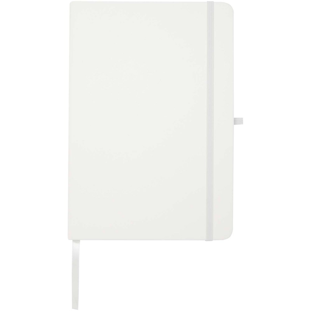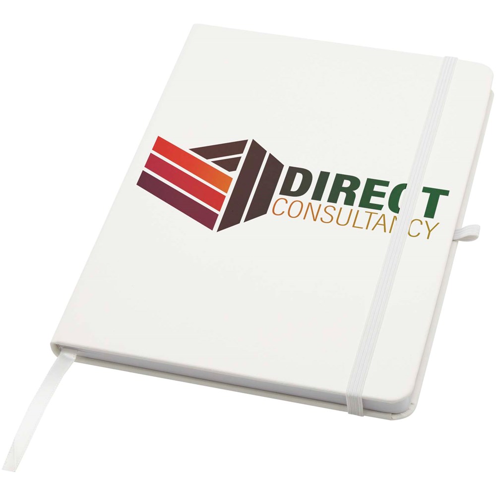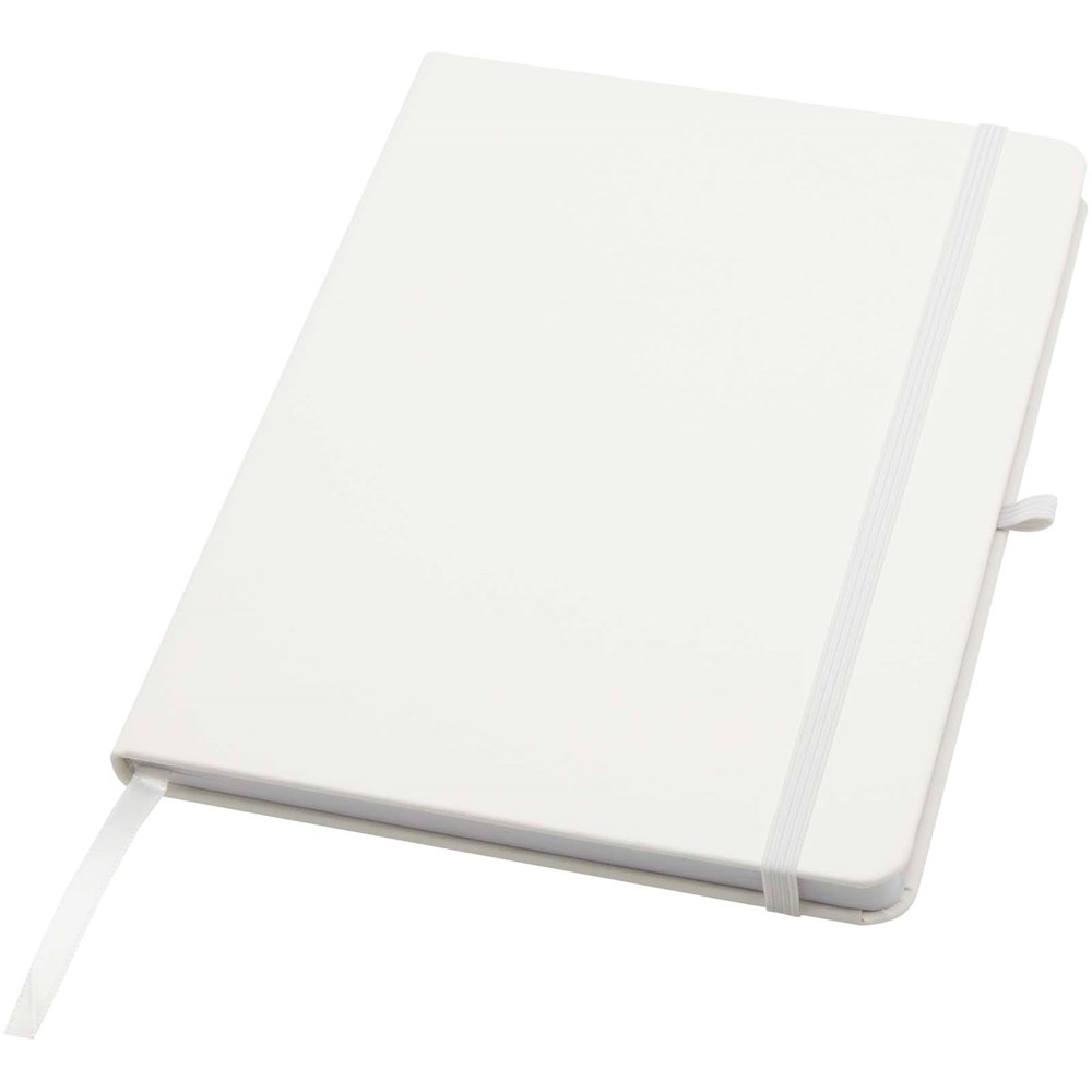 Het Teak A5 notitieboek met harde kaft en afgeronde hoeken is niet alleen onmisbaar op kantoor, maar ook een geweldige kans om je merk te promoten. Het notitieboek heeft 96 gelinieerde vellen van 70 g/m2 papier en een zacht aanvoelende cover. Wordt geleverd met een pennenlus, elastische sluiting en lintmarkering.