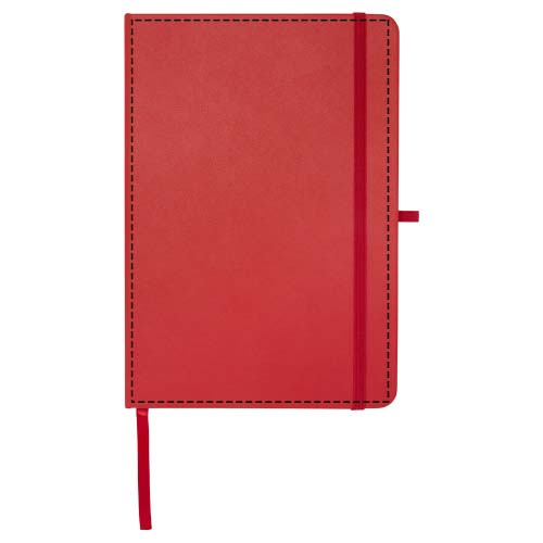 Het Teak A5 notitieboek met harde kaft en afgeronde hoeken is niet alleen onmisbaar op kantoor, maar ook een geweldige kans om je merk te promoten. Het notitieboek heeft 96 gelinieerde vellen van 70 g/m2 papier en een zacht aanvoelende cover. Wordt geleverd met een pennenlus, elastische sluiting en lintmarkering.