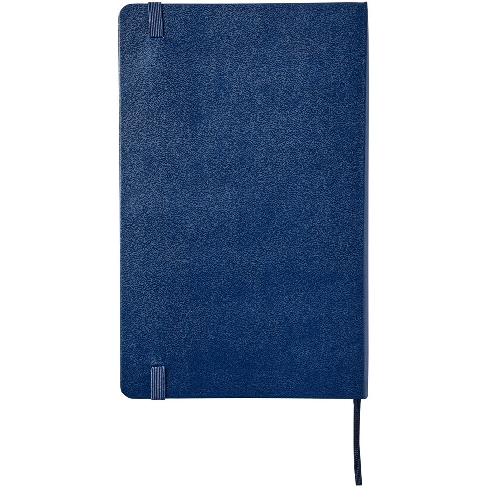 De Moleskine Classic large (13 x 21 cm) heeft een harde omslag van gebonden karton met afgeronde hoeken, zuurvrij papier, een bladwijzer en elastische sluiting. De eerste pagina biedt ruimte voor persoonsgegevens en het noteren van een beloning die de eerlijke vinder in geval van verlies ontvangt. Aan de achteromslag bevindt zich aan uitbreidbaar binnenvak met daarin de geschiedenis van Moleskine. Dit vak kan worden gebruikt voor losse papieren en notities. Bevat 240 ivoorkleurige effen pagina's. Verkrijgbaar in diverse stijlvolle, levendige kleuren.