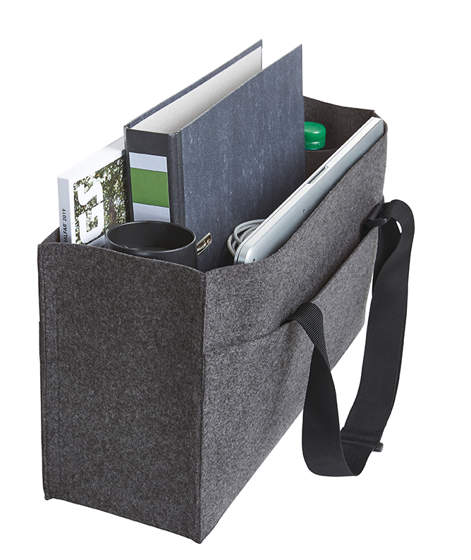 organizer met groot hoofdvak en heel veel opbergmogelijkheden, plat insteekvak, insteekvak met ritssluiting; twee lussen waarin bijv. drinkflessen vastgemaakt kunnen worden; vakje voor visitekaartjes, drie insteekvakken binnenin; drie insteekvakken aan de buitenzijde; in lengte verstelbare draagriem; bevestigingslus voor bijv. autogordel