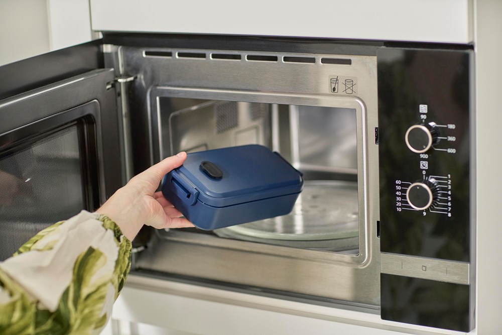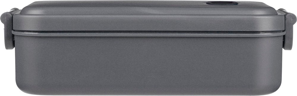 PP lunchbox met een capaciteit van 800 ml. Voorzien van een siliconen ventiel, geschikt voor gebruik in de magnetron en een gespsluiting. Verpakt in bulk.