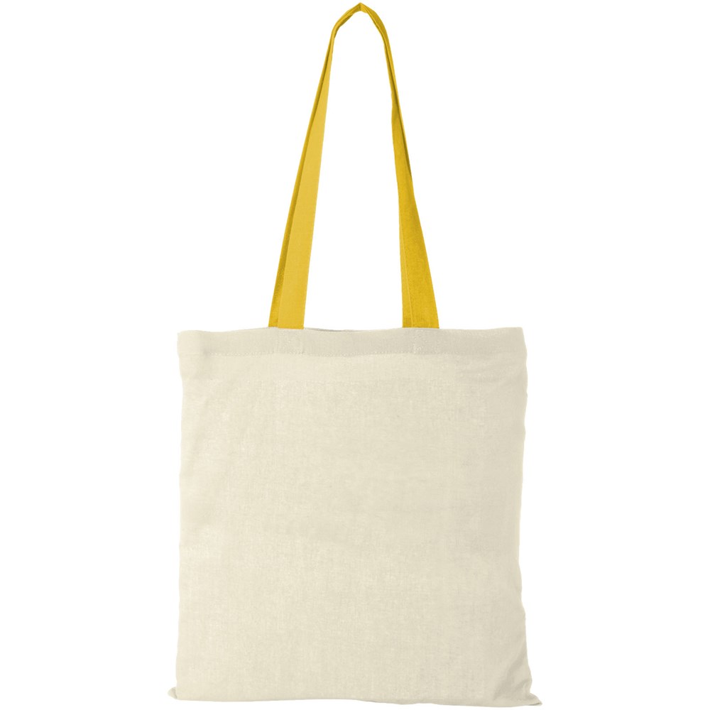 Met zijn felgekleurde hengsels voegt deze tas kleur toe aan elk evenement, congres of festival. De Nevada 100 g/m² katoenen tote bag is een budgetvriendelijke en lichtgewicht tas met een open hoofdvak. Met zijn inhoud van 7 liter is deze tote bag perfect voor het meenemen van alledaagse benodigdheden, van een telefoon en portemonnee tot een favoriet boek of tablet. De 30 cm lange hengsels maken het gemakkelijk om deze tas op je schouder te dragen. Gemaakt in India en OEKO-Tex gecertificeerd. Geschikt tot 5 kg gewicht.