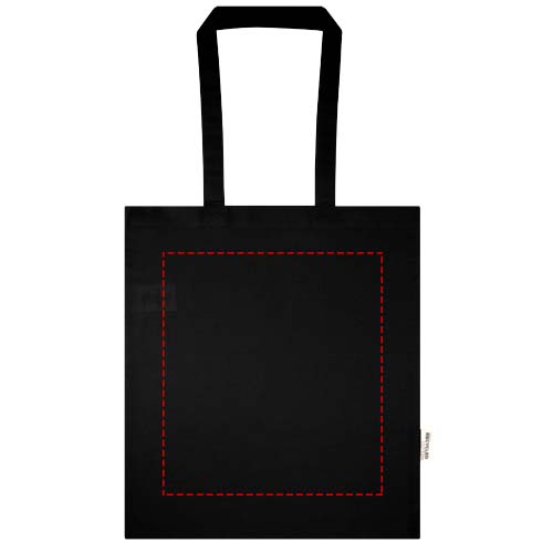 De Madras Blend tas, gemaakt van 60% GRS-gecertificeerd gerecycled katoen en 40% GRS RPET, is de perfecte tas om uit te delen tijdens evenementen, conferenties of te gebruiken als boodschappentas voor kleine boodschappen. Dankzij de katoendichtheid van 140 g/m² is de tas stevig, duurzaam en geschikt om zware items in het hoofdvak te dragen. Met de 30 cm lange schouderbanden is deze tas gemakkelijk mee te nemen. De beschikbare drukmethodes voor deze tas zijn ook GRS-gecertificeerd, wat zorgt voor een transparante en gecertificeerde hele supply chain. Gemaakt in India. Belastbaar tot 5 kg. Inhoud: 7 liter.