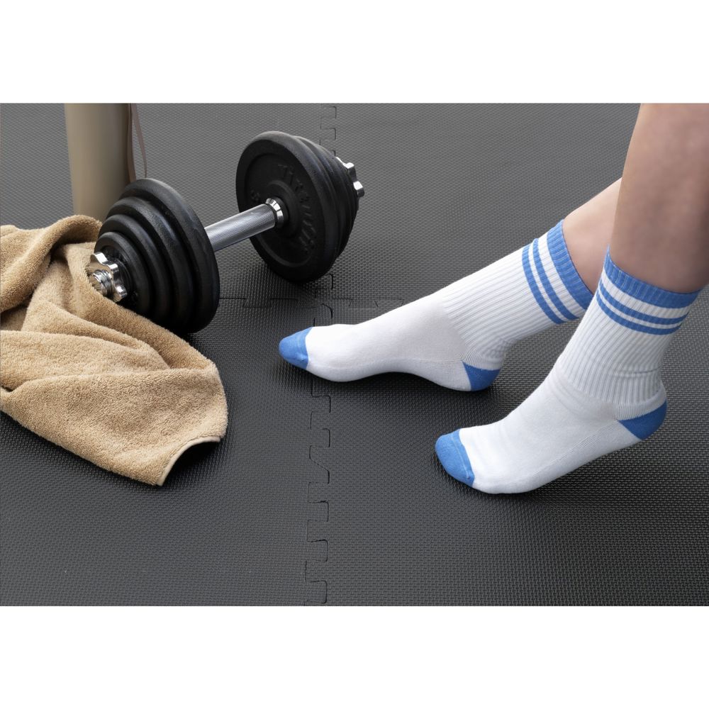 Comfortabele sportsokken van het merk Kingly. De kwaliteitssokken zijn gemaakt van ethische materialen en bestaan uit een mix van 80% gekamd katoen, 17% gerecyclede polyamide en 3% elastaan. Ze hebben een nauwsluitende, prettige pasvorm, een volledige badstof voering voor extra comfort gedurende de dag en verstevigde hiel- en teenzones voor extra duurzaamheid. De sokken zijn te personaliseren met een ingebreid, customised design in maximaal 6 kleuren. Keuze uit 160 garenkleuren. De sokken worden per paar verpakt met een gerecycled label, dat je in jouw eigen full colour ontwerp kunt laten bedrukken. Zo creëer je sokken die perfect aansluiten bij jouw huisstijl. Beschikbare maten M (36-39) en L (40-46). Minimale bestelhoeveelheid: 50 paar per maat en per design. OEKO-TEX® 24001333 gecertificeerd. Made in Europe. EXTRA INFO: De opgegeven PMS-kleuren worden zo nauwkeurig mogelijk benaderd met de beschikbare garens. Door materiaalverschillen is een exacte kleurovereenkomst niet gegarandeerd.