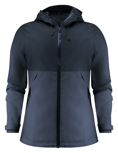 Functionele, bicolor shelljas met getapete naden. Waterdichte ritssluiting vooraan en omgedraaide nylon ritssluitingen aan de zijzakken. Aanpasbare velcrosluiting aan de manchetten. Mesh binnenvoering met linkerbinnenzak en borduurrits. Reflecterende tag in middenrug. De capuchon en de zoom zijn aanpasbaar met elastische trekkoorden.