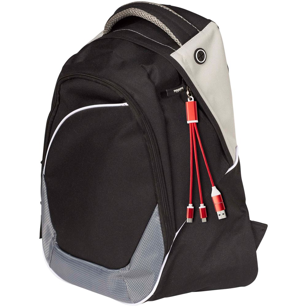 4-in-1 oplaadkabel aan sleutelhanger van gerecycled aluminium met een max. vermogen van 10 W. Dankzij de USB-A en Type-C ingangsconnectoren in combinatie met de Type-C en Lightning/Micro USB combi-uitgangsconnectoren (ondersteunt Apple iOS- en Android-apparaten) kun je de meeste smartphones, camera's, powerbanks en oordopjes opladen.