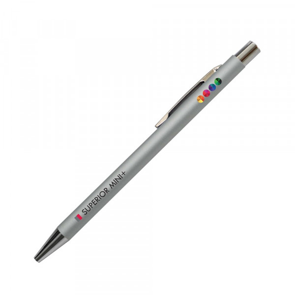 De Pen Superior Mini+ is de vernieuwde versie van onze Pen Superior Mini. Deze pen ligt prettig in de hand, heeft een modern design en een matte uitstraling. Wij personaliseren de Pen Superior Mini+ met een full color bedrukking.