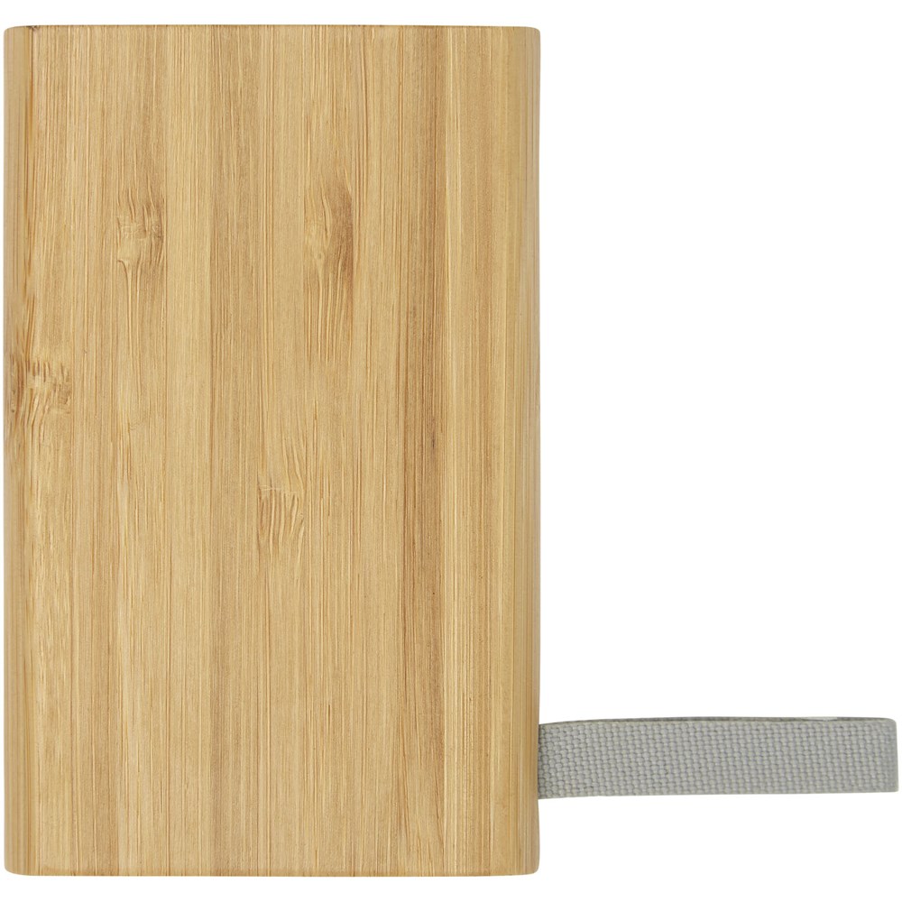 Bamboe powerbank die 5000 mAh back-upstroom biedt voor mobiele telefoons of andere digitale apparaten. Met ledlampjes en een webbing gemaakt van RPET-materiaal. Type-C-oplaadkabel inbegrepen. Verpakt in een geschenkverpakking en geleverd met een gebruiksaanwijzing (beide gemaakt van duurzaam materiaal). Aangezien bamboe een natuurlijk product is, kan ieder item enigszins variëren in kleur.